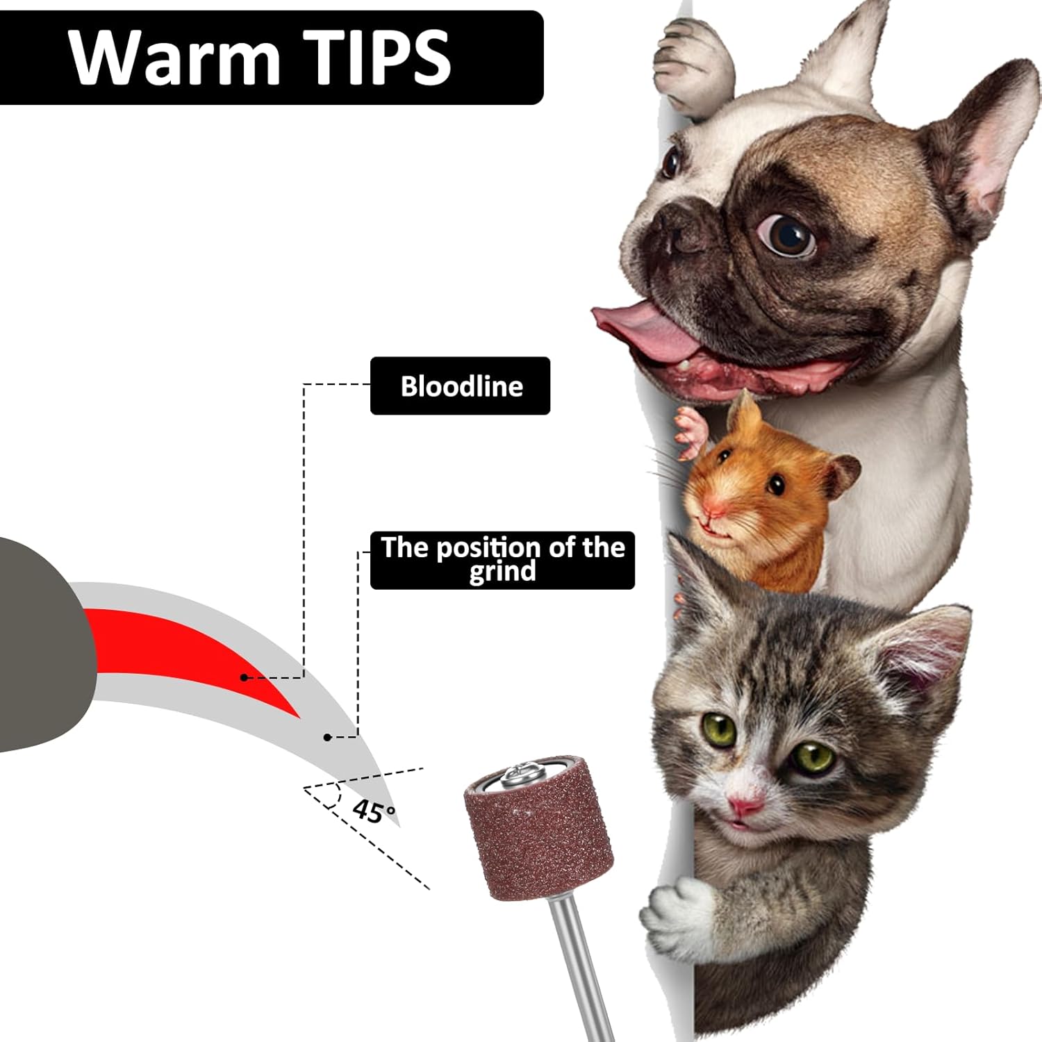 Dog Nail Grinder Replacement Heads: Includes 20 pcs of 60 grit and 100 grit sanding bands, and 2 black grinding drums, compatible with most dog nail grinders.