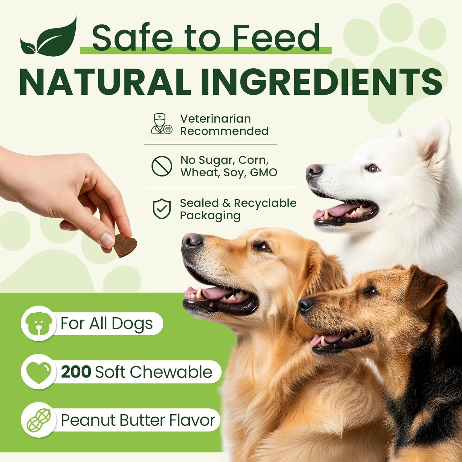 Dog vitamins multivitamin joint support:Dog multivitamins chewable utilize a golden combination of MSM,glucosamine,chondroitin sulfate.Pet vitamins and supplements support cartilage development and repair.Long-term use of senior dog vitamins can enhance the elasticity and toughness of joint cartilage and improve flexibility.Multivitamins for dogs can support joint comfort,reduce friction and enhance mobility,allow dogs to move more freely.Dog daily vitamins provide comprehensive joint protection