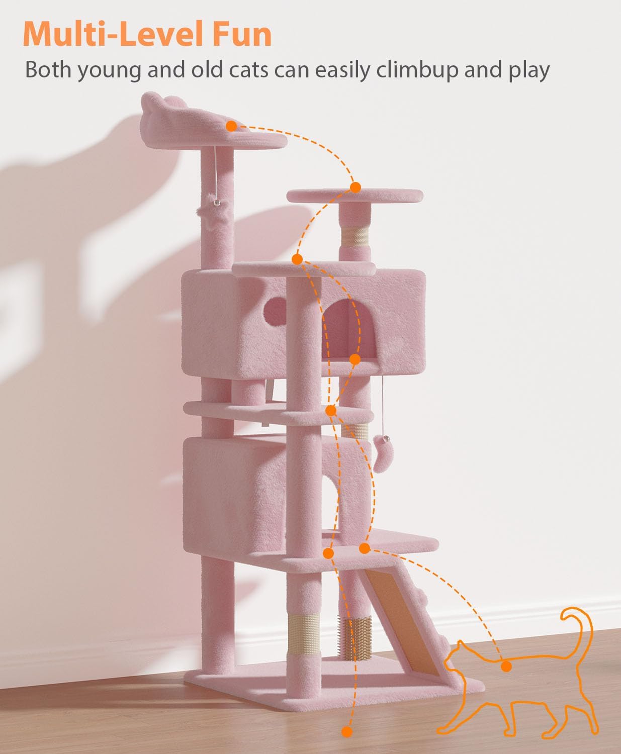 [Multi-Level Cat Playground] Designed with multiple levels, this cat tower makes it easy for cats to climb and explore the vertical space, satisfying their natural instincts and activity needs