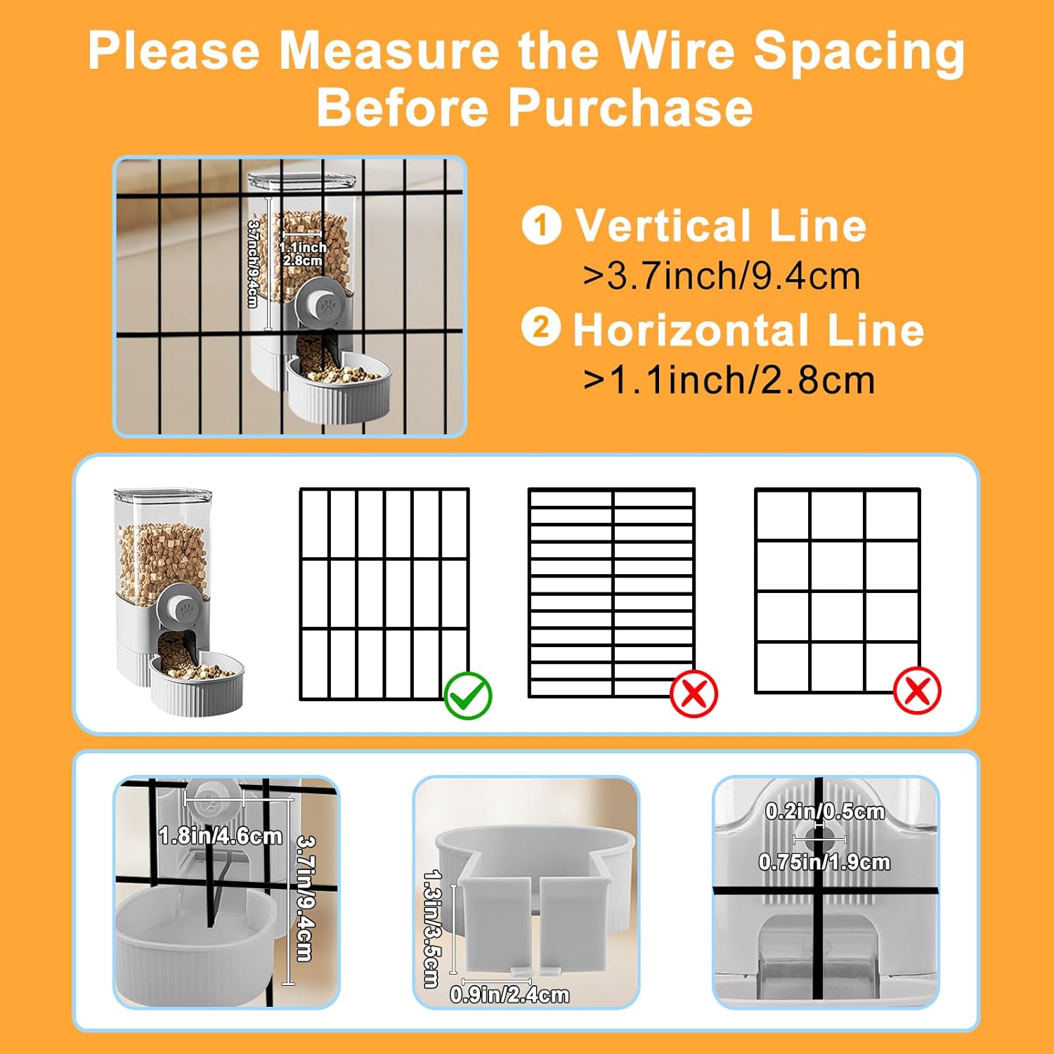 Cage Pet Dispenser: It suits for small animals, as Cats, Dogs, Rabbit, Ferret, Chinchilla, Bird, Hedgehog, Guinea Pig and so on. Suggestions: the recommended spacing of cage wire mesh is 3-6cm (1.2-2.4inch), please measure your cage spacing before purchase.