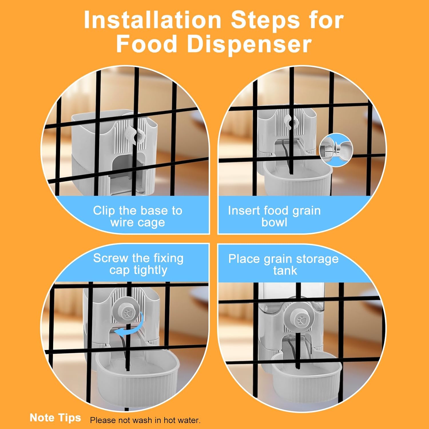 Easy to Clean: It’s made of plastic, all parts can be detachable to water wash. The removable food box is not only simplifies refilling, but also for daily clean. The transparent food box allows for easy checking the remaining grain.