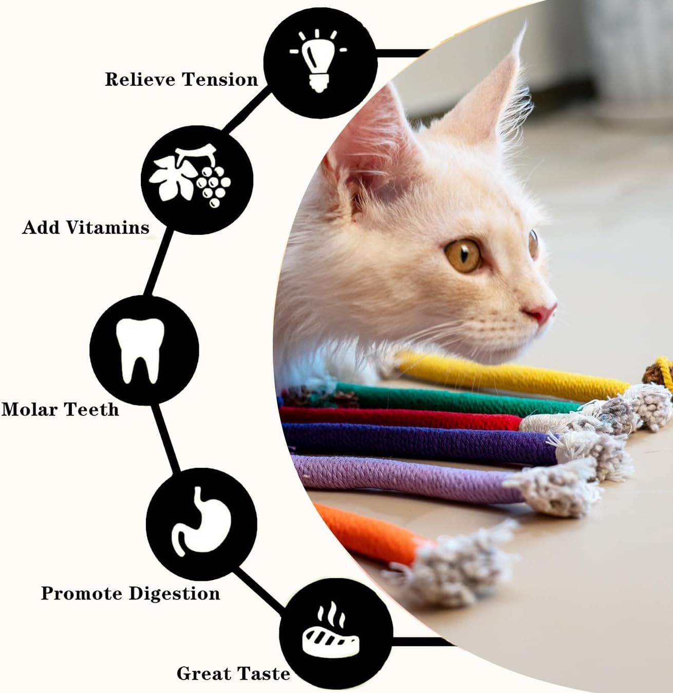 Bent Cat Rope Toy, Pet Chew Toys, Interactive Tease Toys for Cats and Kittens, Bite-Proof Playthings, Cotton Rope Kitten Toys Dental Care Stress Relief Pet Supplies (Medium 6 Pack)