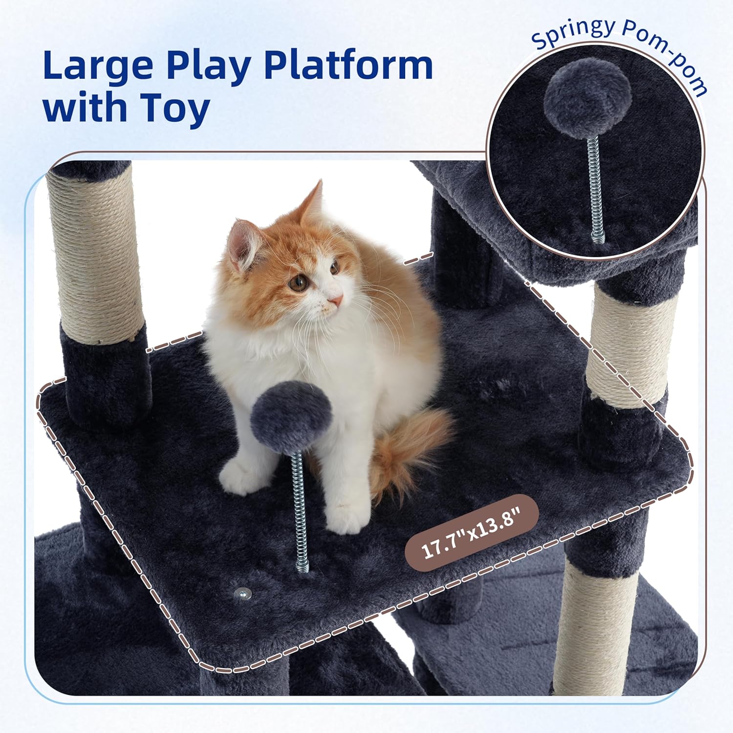 Large Platform with Toy:The large independent platform on the middle floor is suitable for both kittens and adult cats. Additionally, the spring-attached pom-pom enhances the fun, providing the cats with an entertaining and joyful play space.