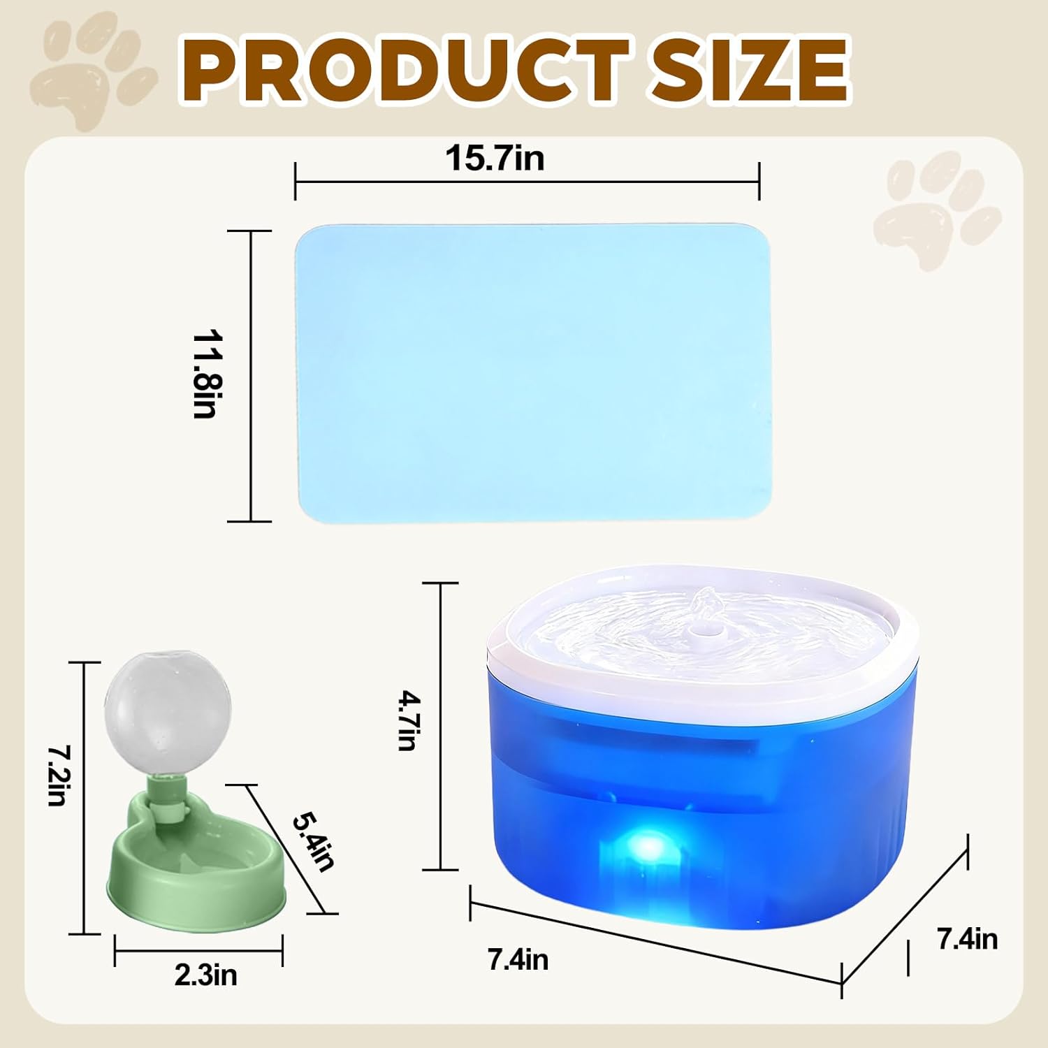 This cat water dispenser offers ultra-quiet operation and a complete mess-free solution. Enjoy peace and clean floors. The upgraded pump operates at a whisper below 30dB, undisturbed for your pet’s peace and your quiet home,Precision bearing, longer service life. The included absorbent feeding mat catches every splash, protecting your floors with its waterproof rubber base.