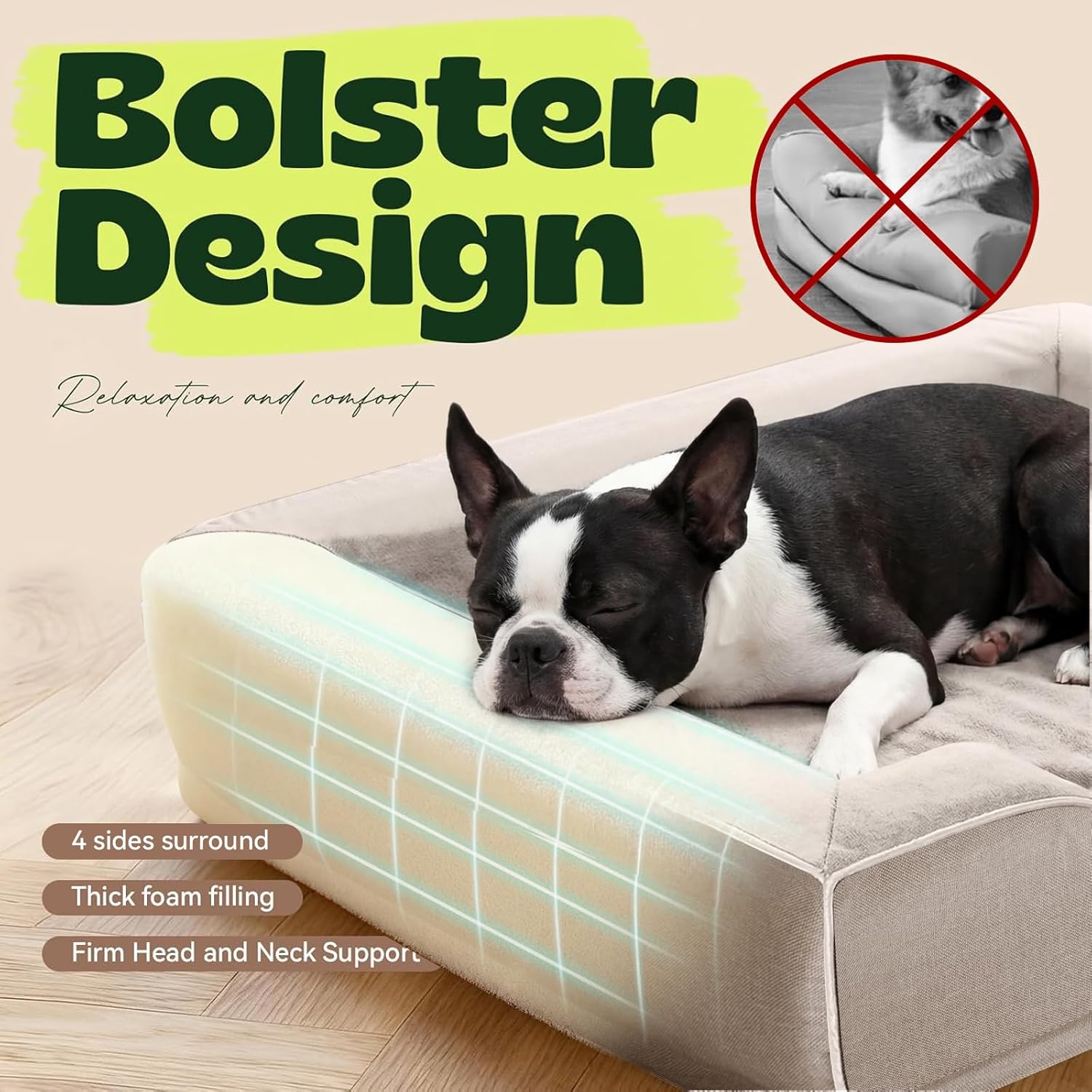 Bolster Design:Unlike other dog sofa bed filled with pieces foam in the market, we adopted with high density foam in whole piece to build the 4-sided bolster, provides the perfect balance of luxurious comfort and optimal support to help your pet get the blissful night of sleep they deserve. And the lowered entrance protects your pet’s knees and promotes accessibility.