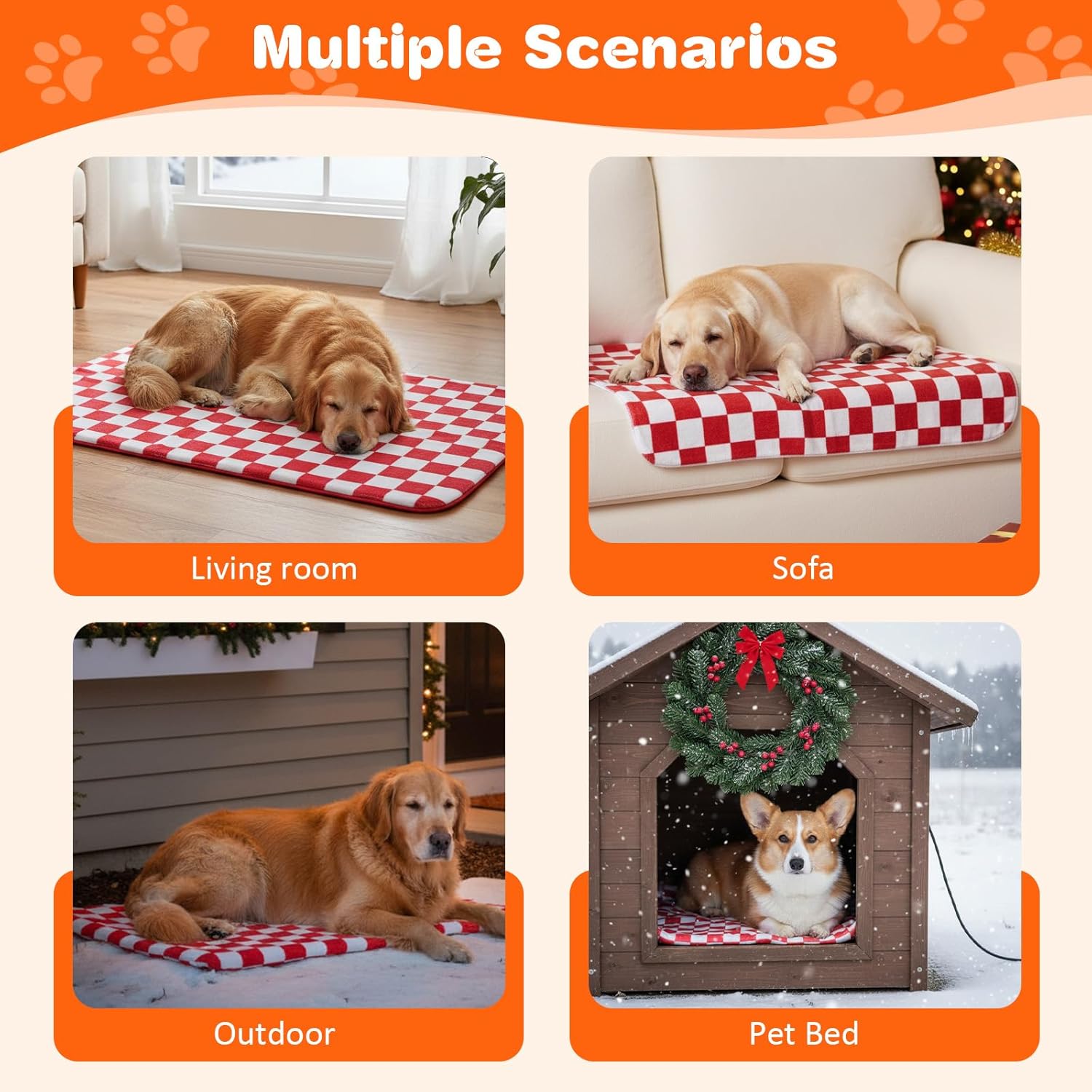 Dog and Cat Heating Pad, 12 Adjustable Temperature & Timer with Chew Resistant Cord, Indoor Pet Heated Bed Mat for Cats and Dogs (Red, 27.5×17.7in)