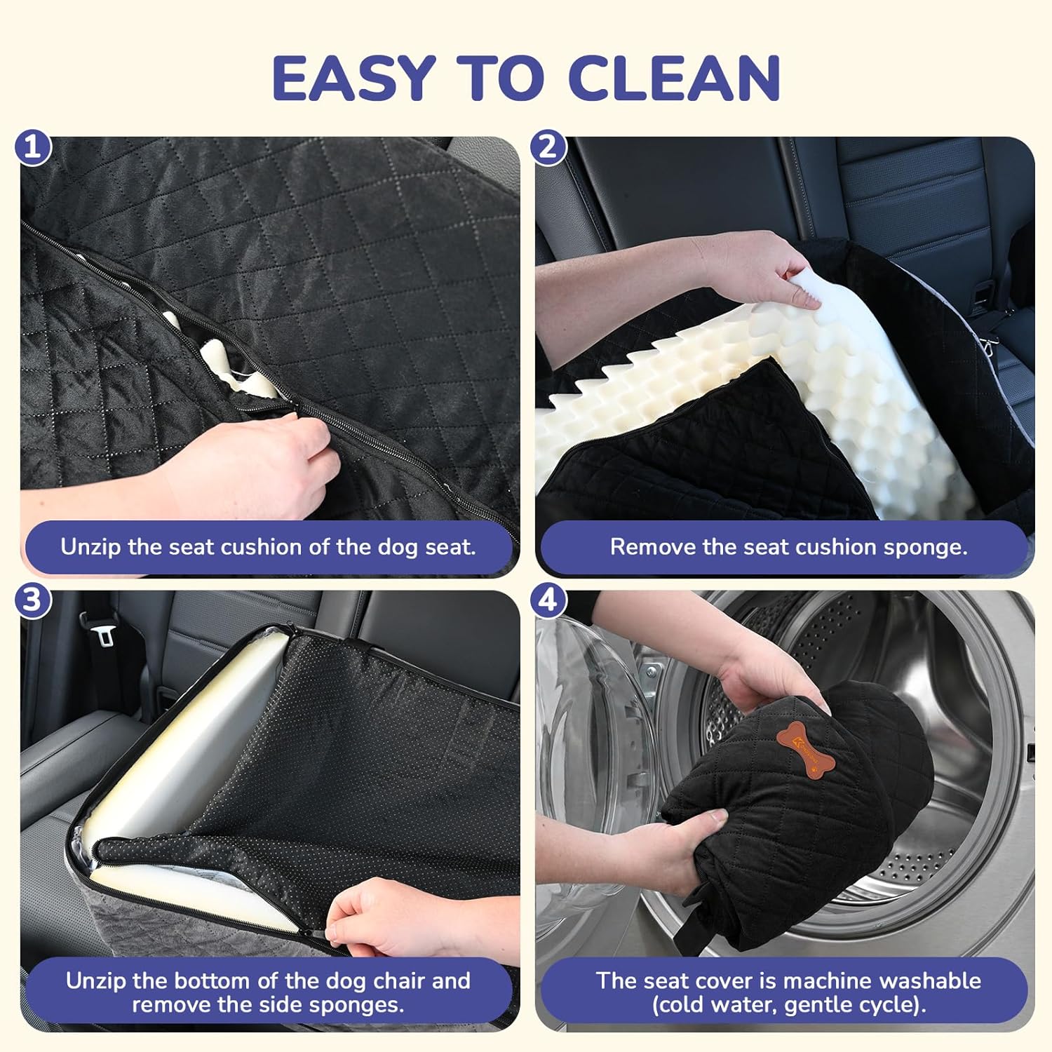Dog Car Seat for Small Medium Dogs, 6″ Elevated Dog Booster Seat with ISOFIX Safety Fixation, Washable Cover & High Density Memory Foam, Portable for Car Front/Rear/Trunk Home Outdoor Use (Jet Black)
