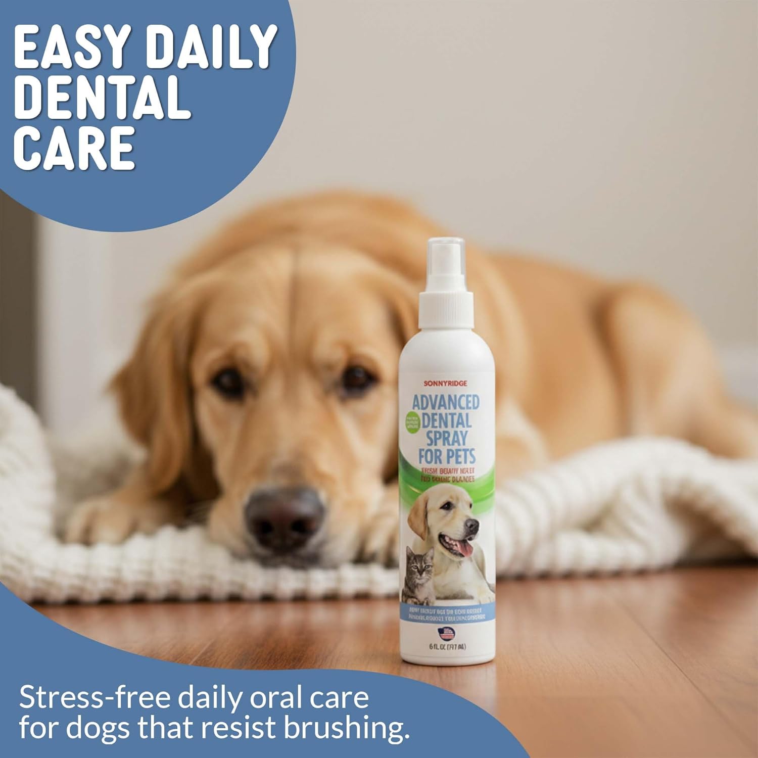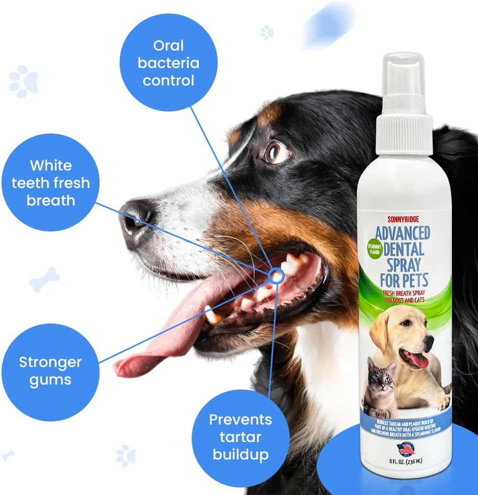 🐶【SONNYRIDGE DOG DENTAL SPRAY】Instantly turns bad breath into sweet, fresh-smelling breath without brushing or the use of alcohol or toxins. Simply lift your pet’s lips and spray 1–2 pumps of this safe, gentle dental solution directly onto their teeth and gums. It’s an easy way to help keep your dog’s or cat’s teeth clean, healthy, and cavity-free. ALL NATURAL Dog breath fresher.