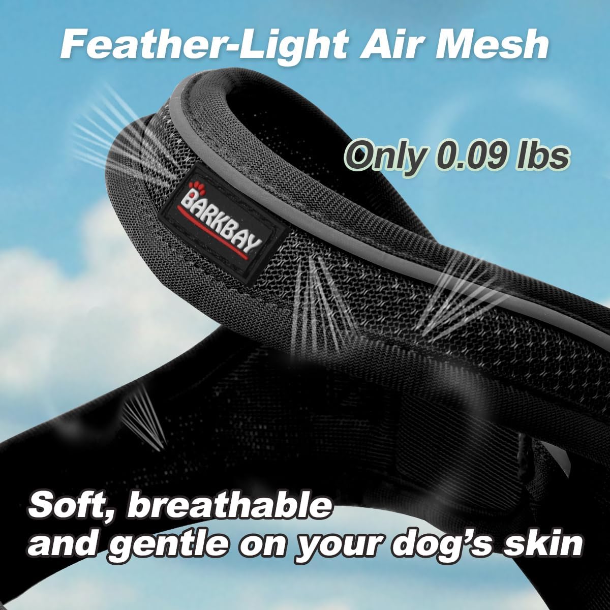 The BARKBAY small-dog harness is made from ultra-soft, breathable mesh to keep your pup cool and comfortable. With no chest padding, it allows natural movement and zero front pressure. Its feather-light design makes it perfect for daily walks, warm weather, and sensitive small breeds.