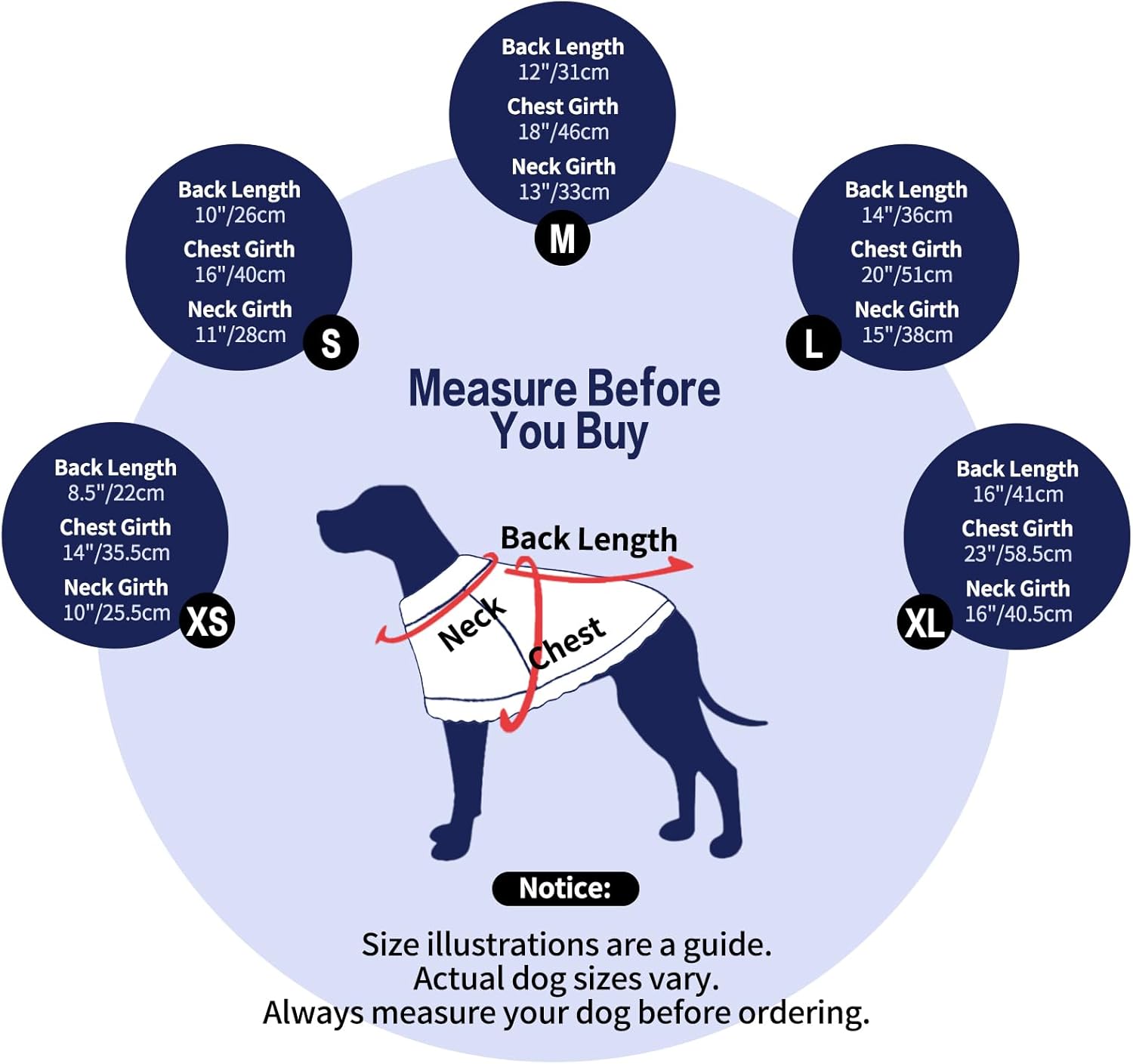 For small dogs and cats: This dog cloak has 5 available sizes (XS/S/M/L/XL), Please prioritize the back size, and measure your dog’s chest and back girth before purchasing. In particular, our dog jacket has an adjustable belly strap, which can make the cloak more appropriate for your dog.