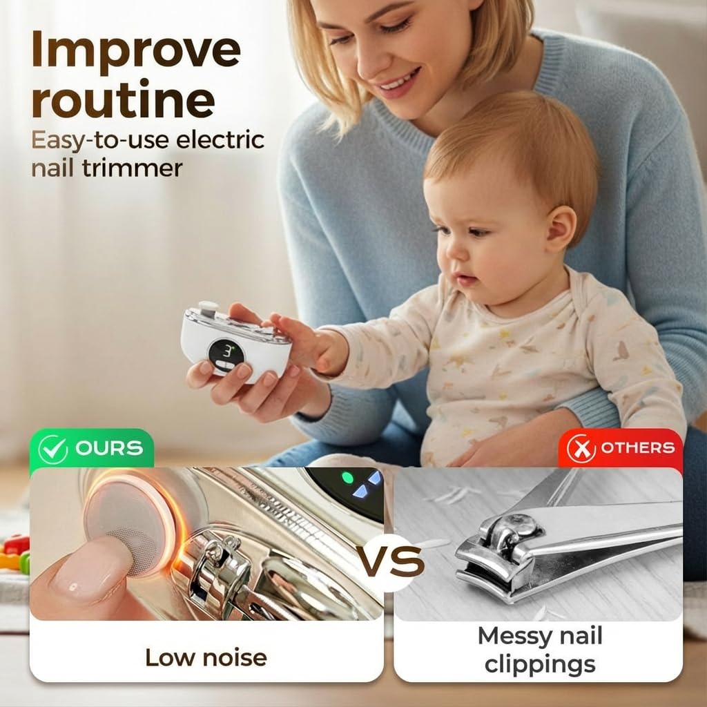 【2-in-1 Nail Trimmer & Polisher】 This electric nail tool is designed to both trim and polish nails. The one-button operation is intended to simplify nail care for users of various ages.