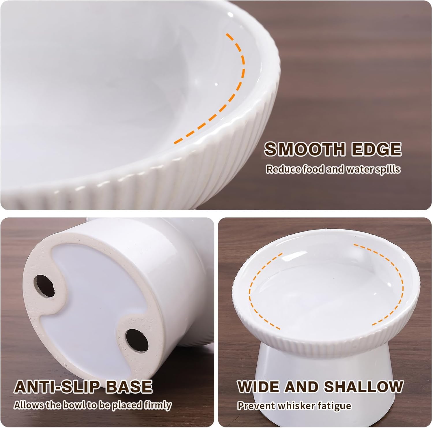 [Fashion Vertical Stripe and Non-slip Base Design]Compared to other products with hollow base design to reduce weight,glue it together easy to break in half,glaze chipping off,our cat bowl base is thick and heavy,solid and stable,no tipping.
