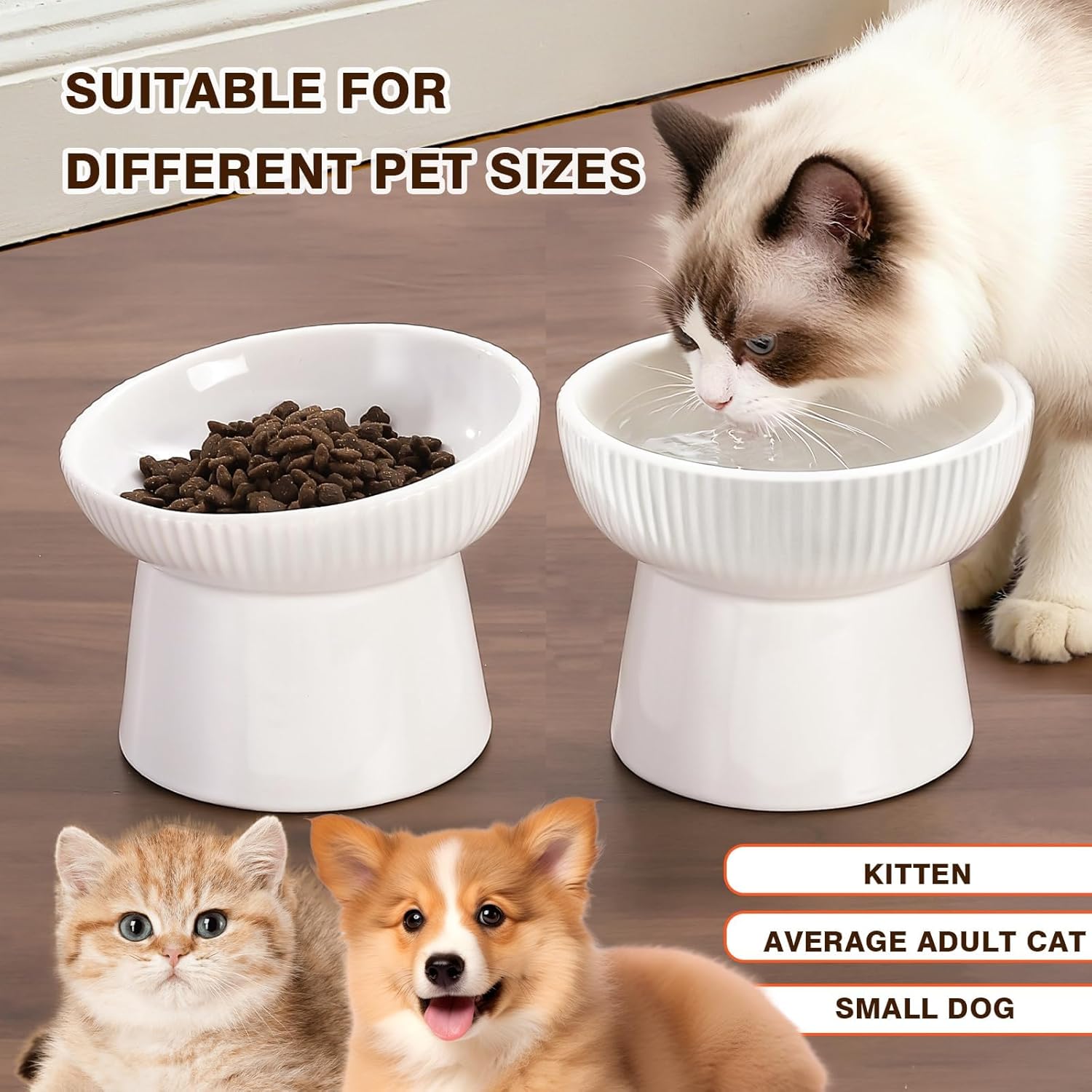 [2-Pack,Tilted Bowl and Flat Bowl]This feeder bowl set definitely deep enough to put water and wet and dry foods.Suitable for Kitten,adult cat or puppy.