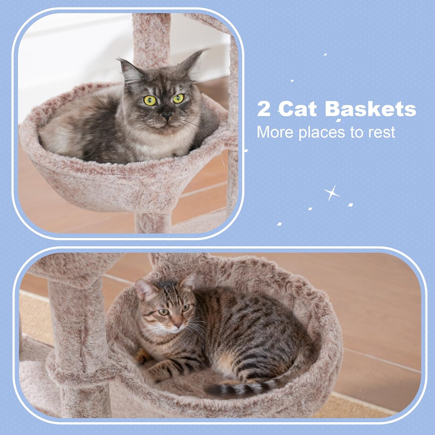 Roomy & Cozy Resting Zones: Equipped with a huge cat condo that provides ample and cozy space for big cats to rest, and 2 large hammocks that are perfect for multi-cat households, helping to avoid competition over resting spots