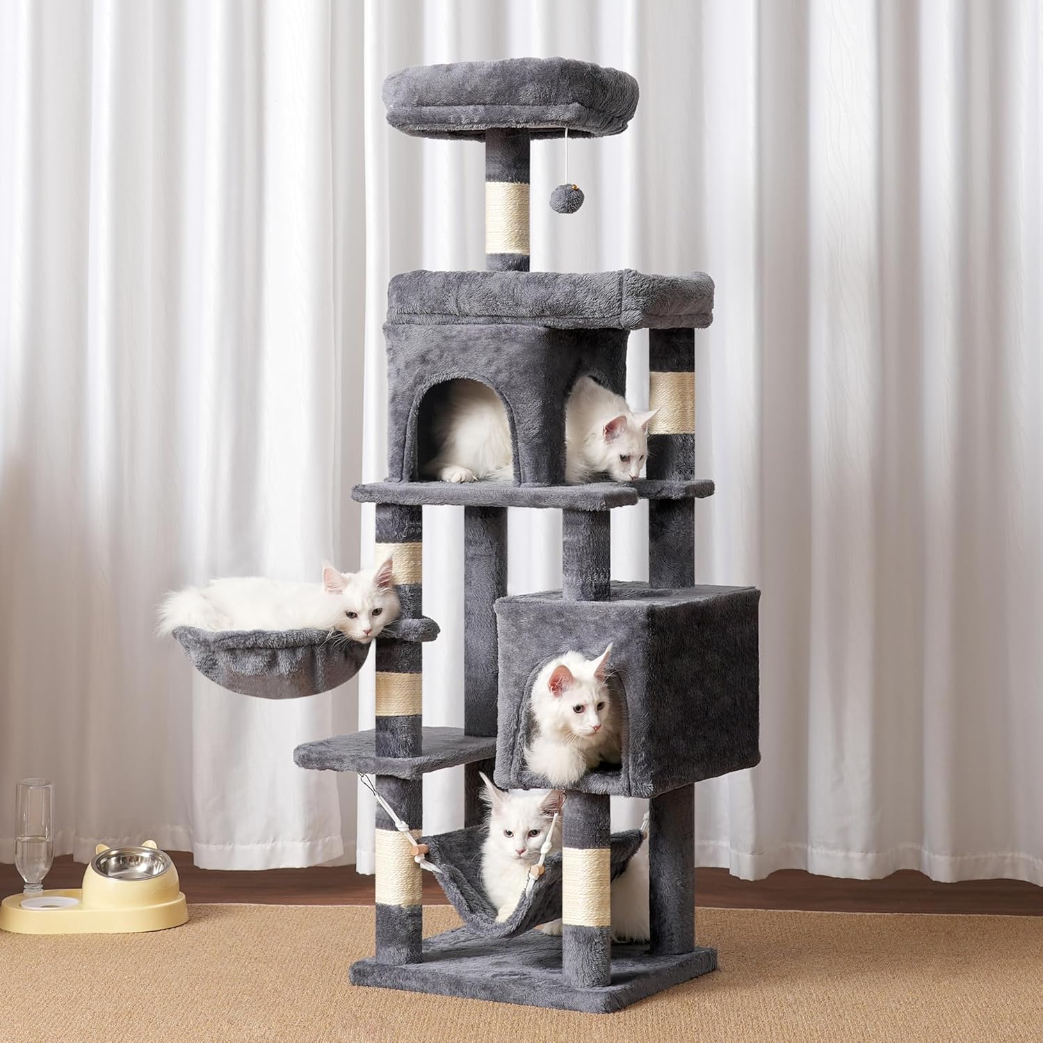 MULTIFUNCTIONAL ACTIVITY CENTER: With a top perch, a plush hammock, a warm basket and a pompom, this cat tree meets the many needs of cats and is perfect for multi-cat households