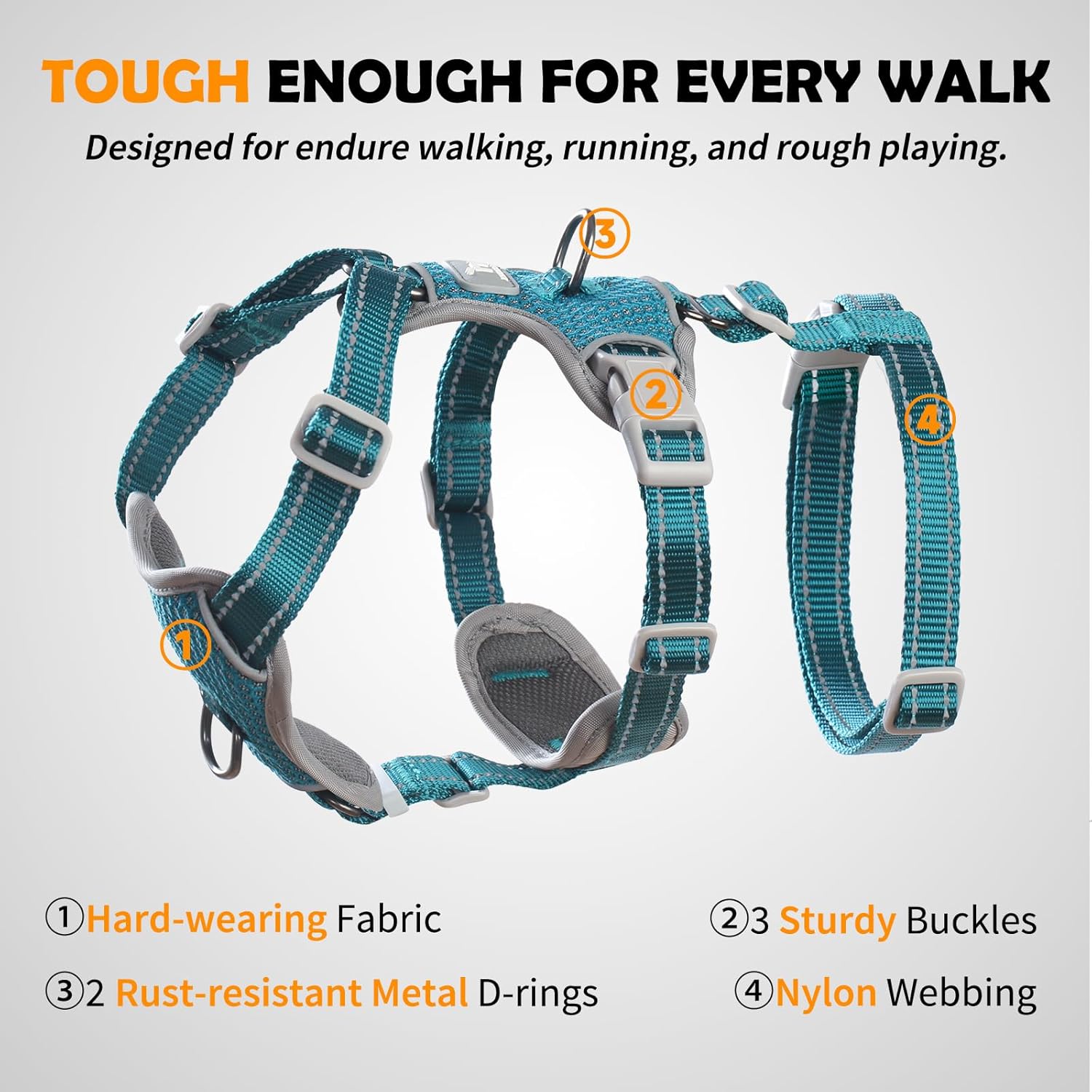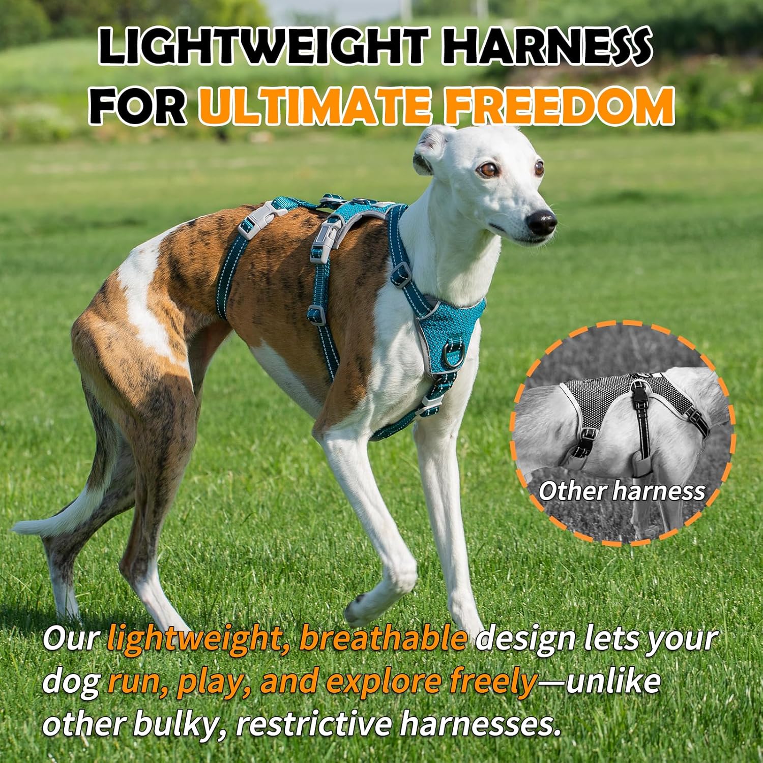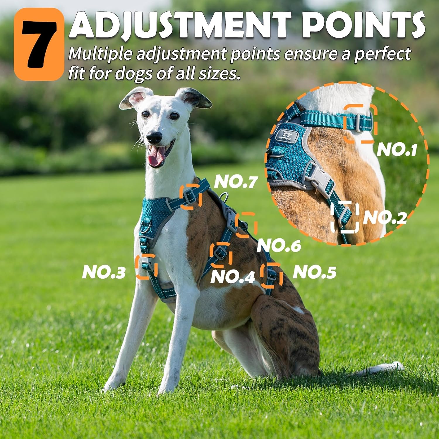Huntboo Escape Proof Dog Harness – No Pull, No Slip, Fully Reflective, Adjustable 7-Point Design for Small, Medium, and Large Dogs – Lightweight for Outdoor Training & Hiking (Teal, M)