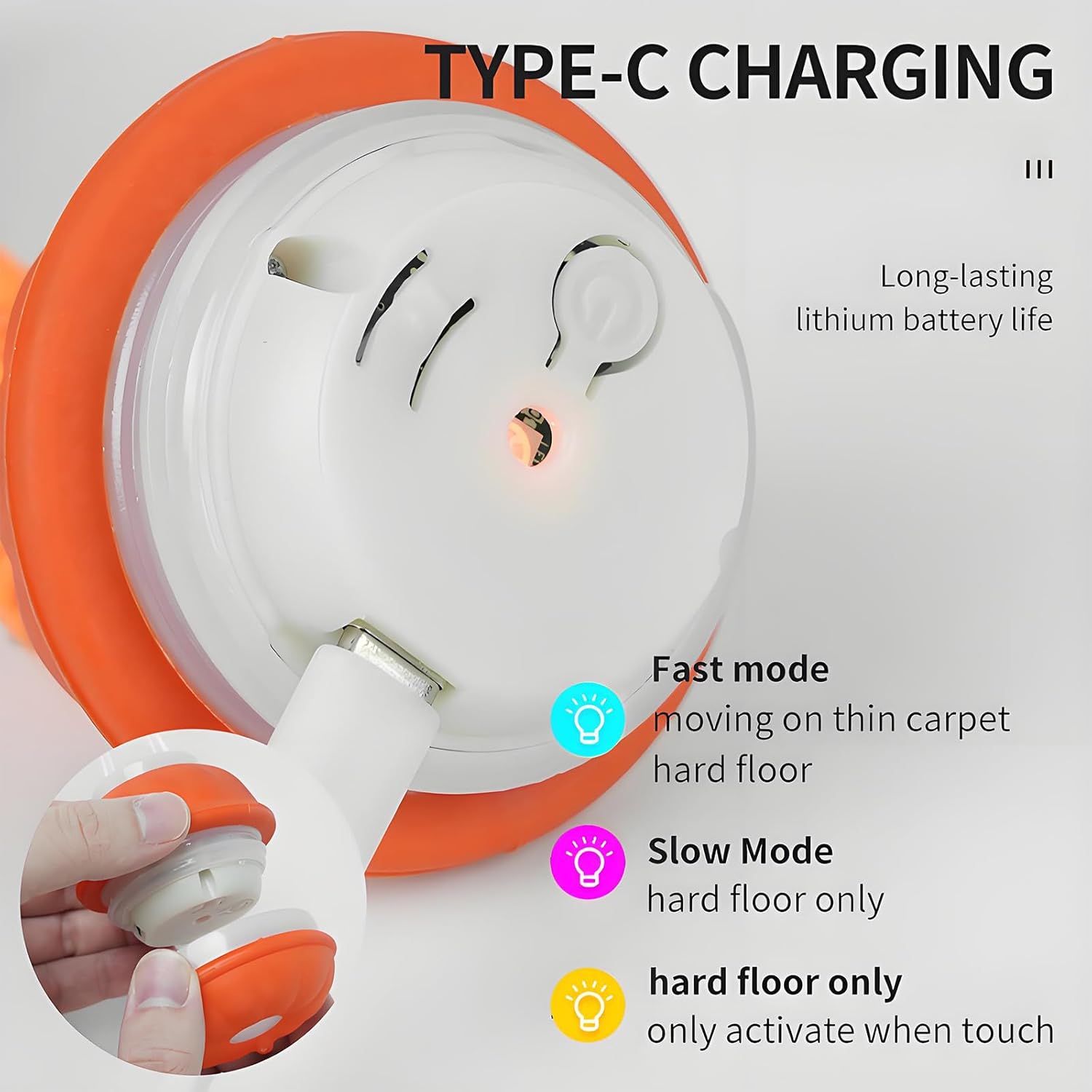 【Type-C Rechargeable Smart Dog Toys】 No battery changes! Just plug with 5V/1A charger. The self moving dog toy wakes hourly or when touched, creating unpredictable chase patterns that make it the ultimate puppy interactive toys,tiny fetch dog toy