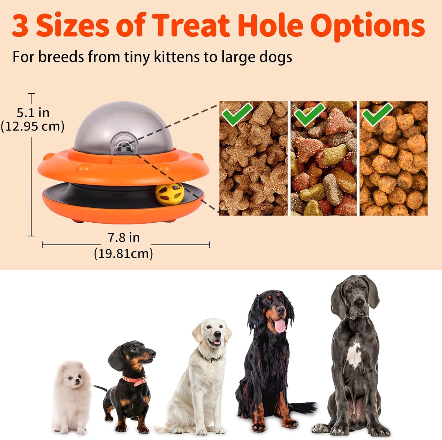 Automatic Interactive Dog Ball Track Toys: When the dog swipe the track dog ball, it will trigger the motion sensor to make the puzzle feeder automatically dispense treat as a reward, keeping dogs busy and happy!