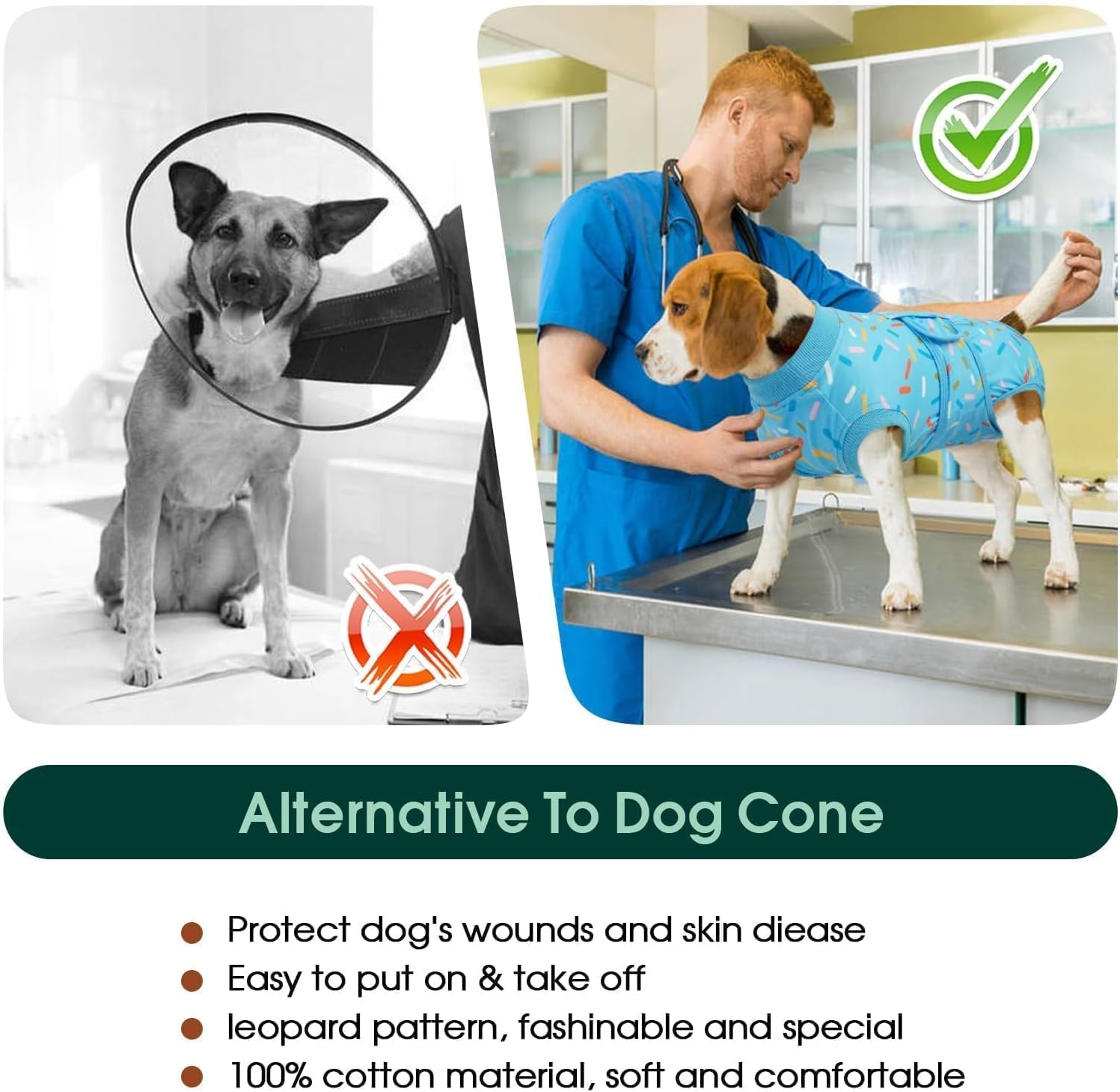 PROTECTIVE DOG RECOVERY ONESIE: Shield your pet’s wounds and incisions after neutering or spaying. This comfy alternative to a cone helps keep your dog or cat calm while preventing licking, biting, or scratching. Perfect for post-surgery recovery