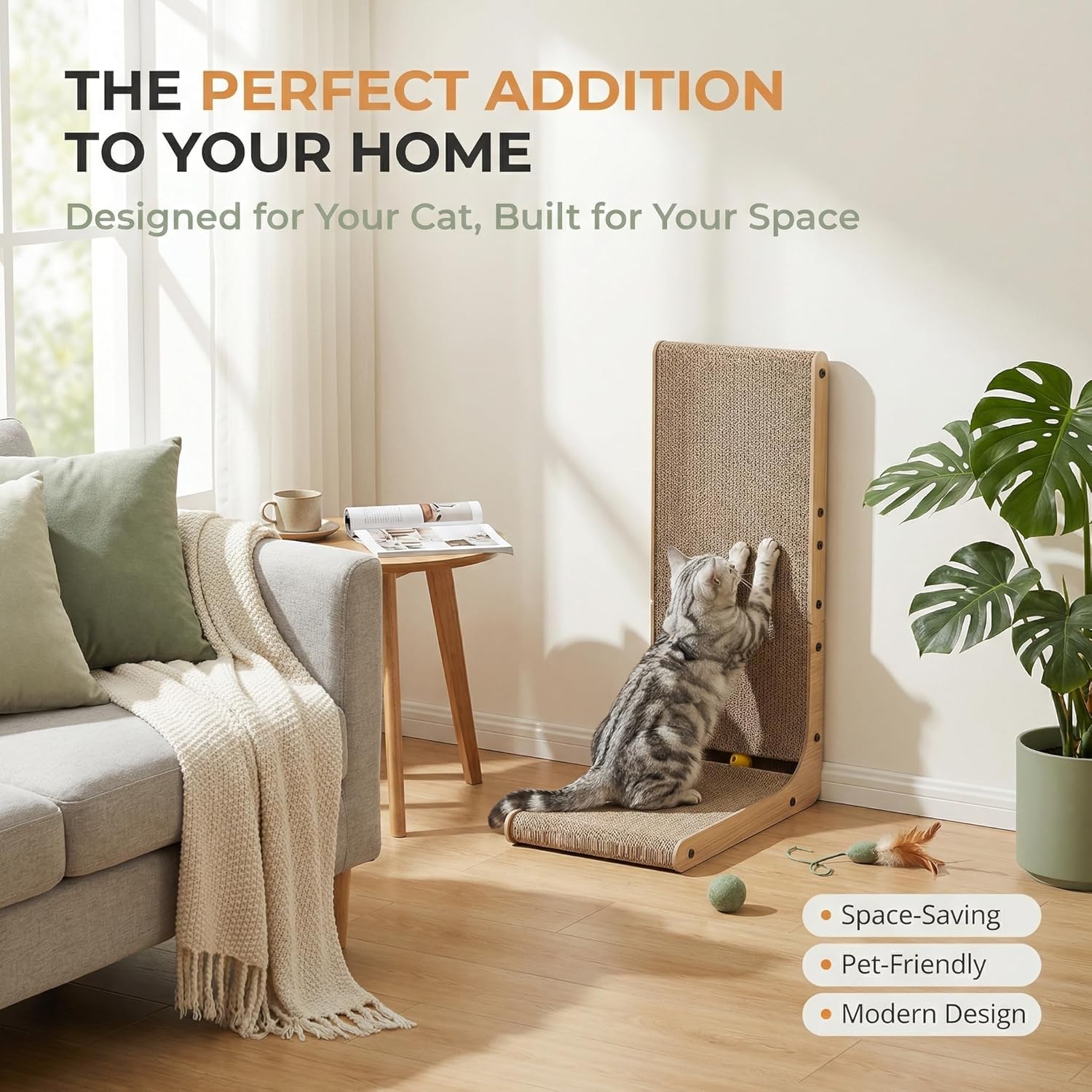 L Shaped Cat Scratcher for Indoor Cats, Cat Scratching, Cat Scratch Pad, 26.8 Inches Tall Scratching Post with Sturdy Base, Durable Cat Scratch Pad for Kittens & Adults, Furniture Protector
