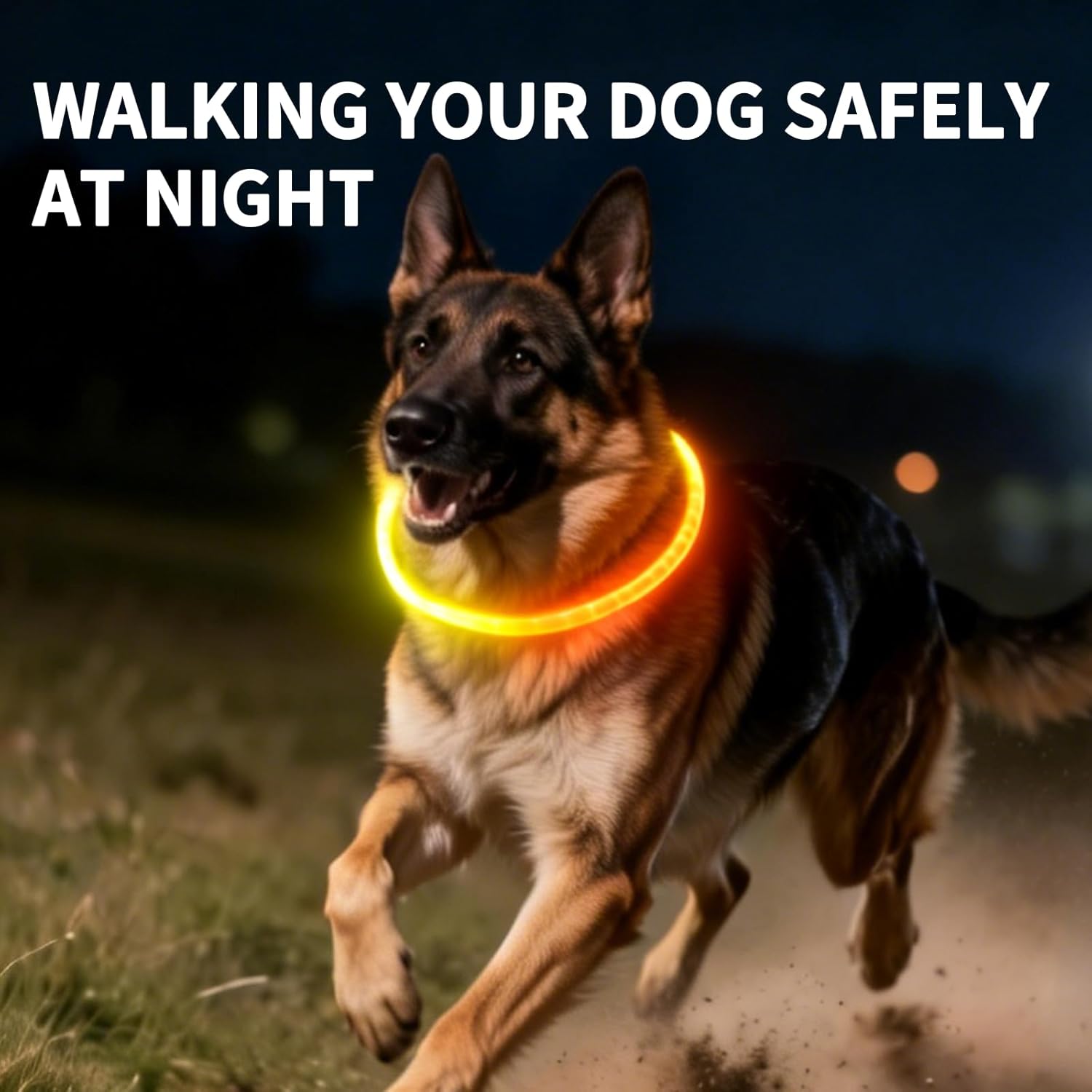 360° VISIBILITY: Boasts stunning rainbow LED glow with 360° full illumination, visible up to 500 meters in low-light/dark conditions and equipped with 4 super bright flashing modes. Eliminates visual blind spots to keep your dog safe from cars, bikes and other hazards during night walks, camping, hiking or outdoor adventures, effectively preventing pet loss.