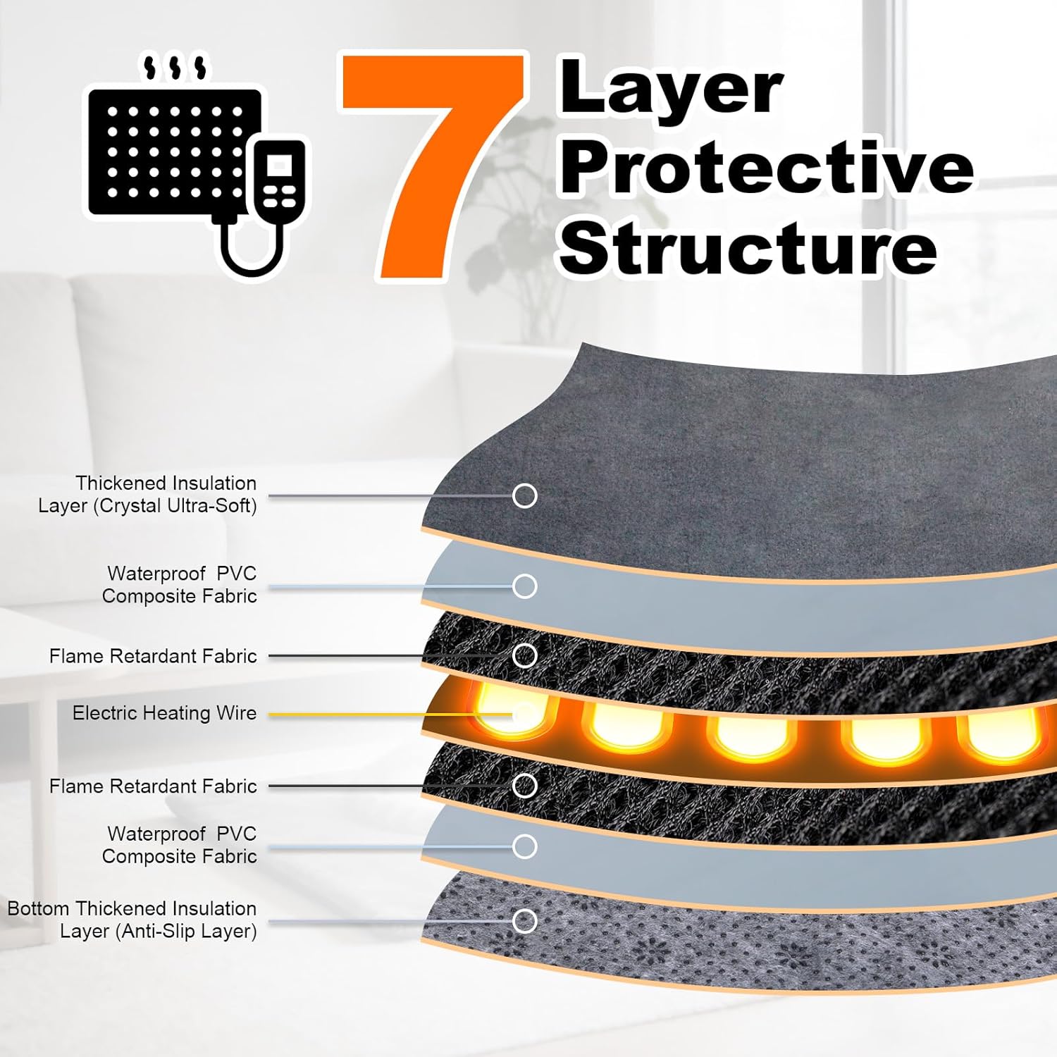 Pet Safety Design:Dog heating pad adopts a 7-layer protective structure, along with a waterproof and flame-retardant inner layer material and a chewy power cord, providing double protection for your pet.Cat warming pad features automatic power-off to prevent overheating. It is a worry-free choice for indoor cat bed