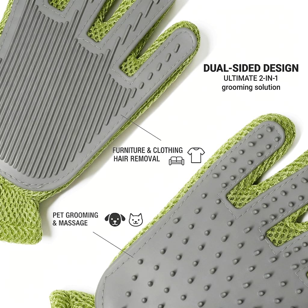 [VERSATILE 5-IN-1 GROOMING TOOL] This multi-functional glove serves as an effective pet hair remover, deshedding brush, massage tool, and bathing aid. Constructed with durable, heavy-duty materials, it provides a complete grooming solution for your home and furniture.