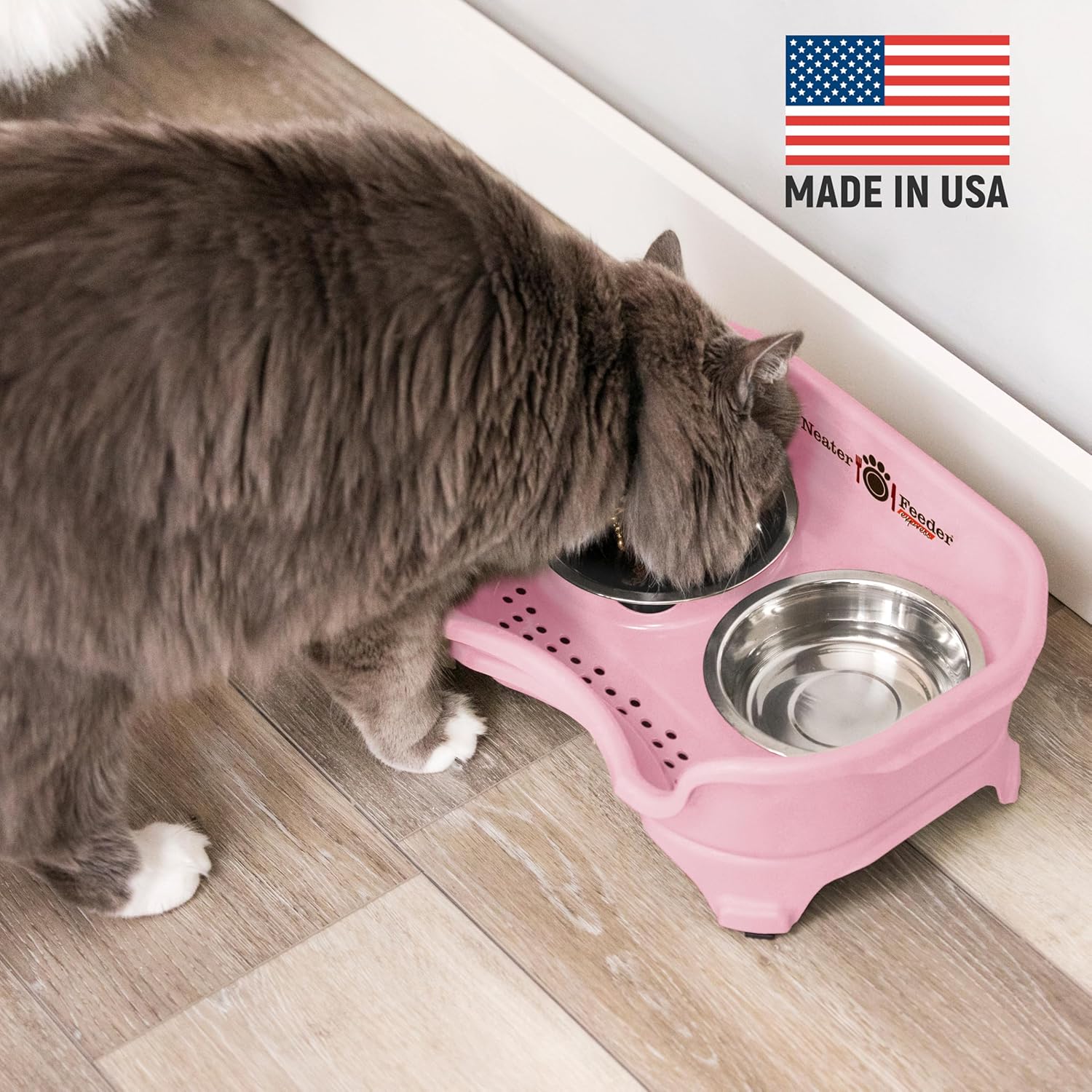 MADE IN THE USA: All components of the Neater Feeder cat stand are manufactured in the USA, except for the stainless steel bowls, which are made in India. All assembly is done in the USA. The Neater Feeder is patented.