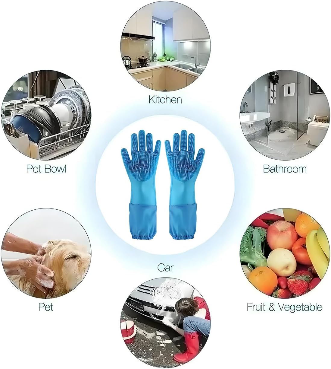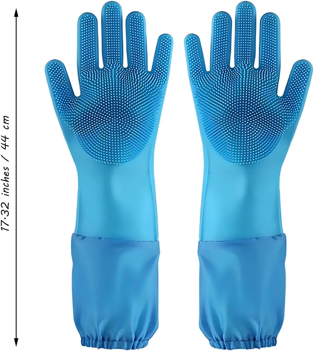 Pet Grooming Gloves Dog Washing Bathing Silicone Gloves with Soft Bristles and Sleeves Massage Combing for Dog Cat Rabbit 1 Pair