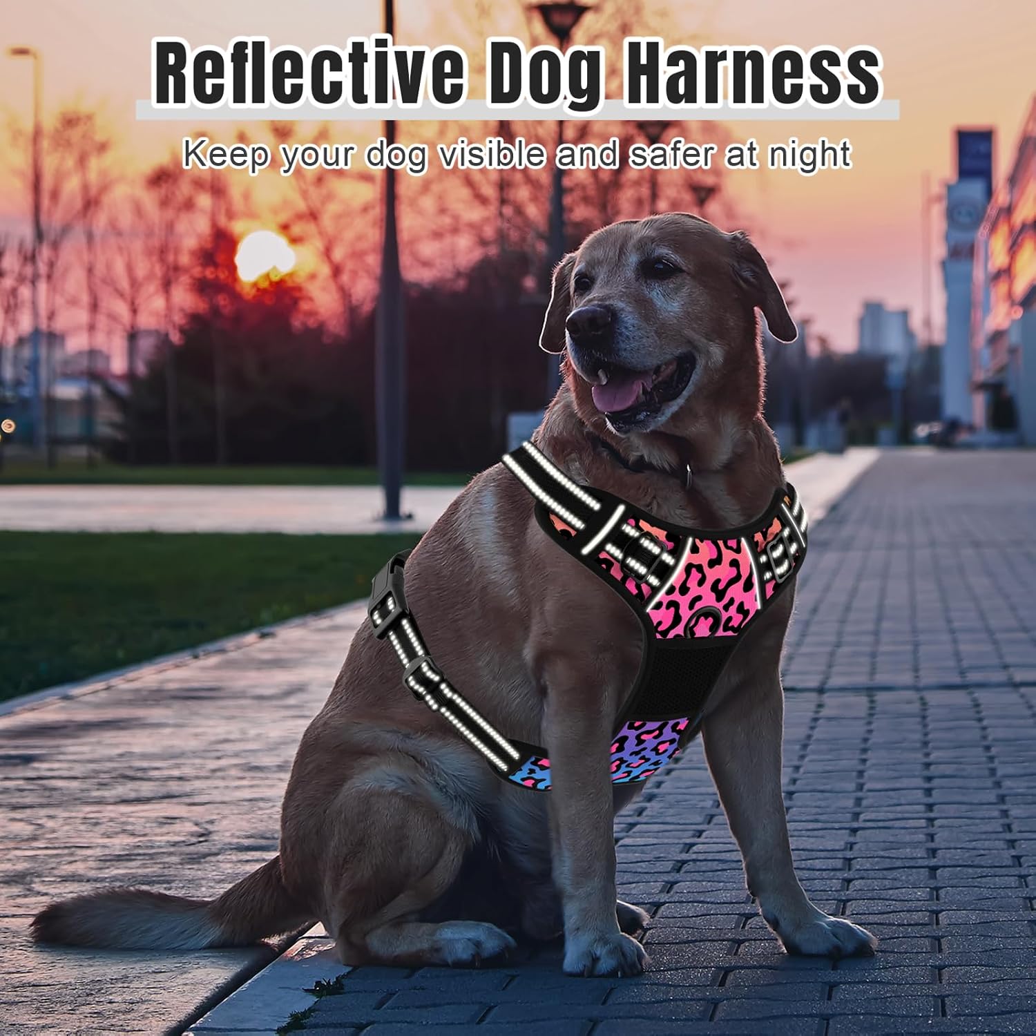Easy Adjustment: The heavy duty dog harness is designed with 4 easy adjusting strapsaround the neck and chest, which can be adjusted to the most fitting size, prevents the dog from breaking free while maintaining maximum comfort