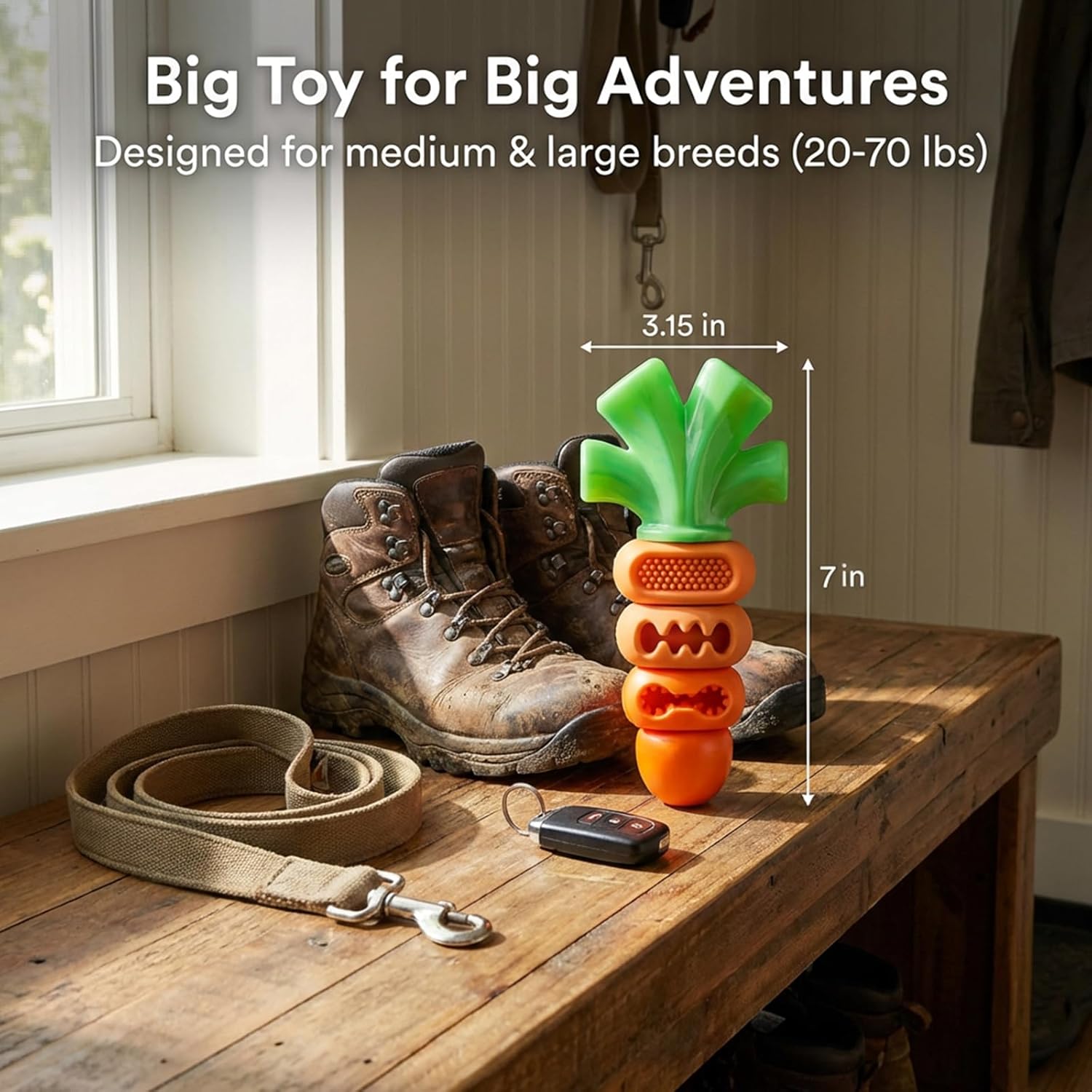 The Ultimate Furniture Saver for Aggressive Chewers: Stop coming home to chewed-up table legs or destroyed sneakers. Engineered specifically as dog toys for aggressive chewers (20–70 lbs), this heavy-duty carrot acts as the perfect decoy. It gives your dog a heavy duty dog toy that feels satisfying to bite, protecting your home while withstanding gnawing sessions that typically destroy standard toys in minutes