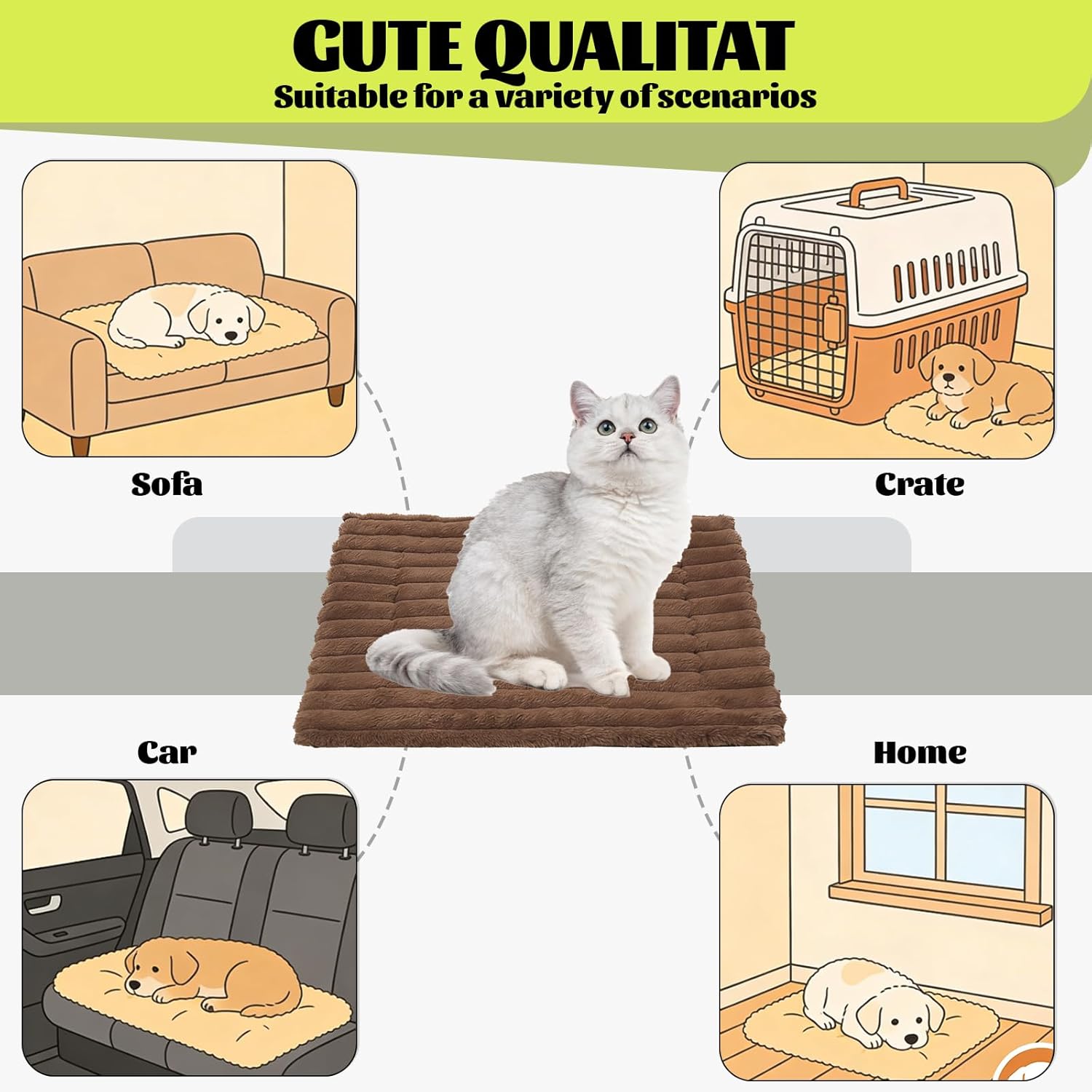 Vermeira Self Warming Pet Mat, Vermeira Pet Bed, Warm and Comfortable, Pet’s Own Body Temperature Rises, Velvet Base Machine Washable (Brown, Large)