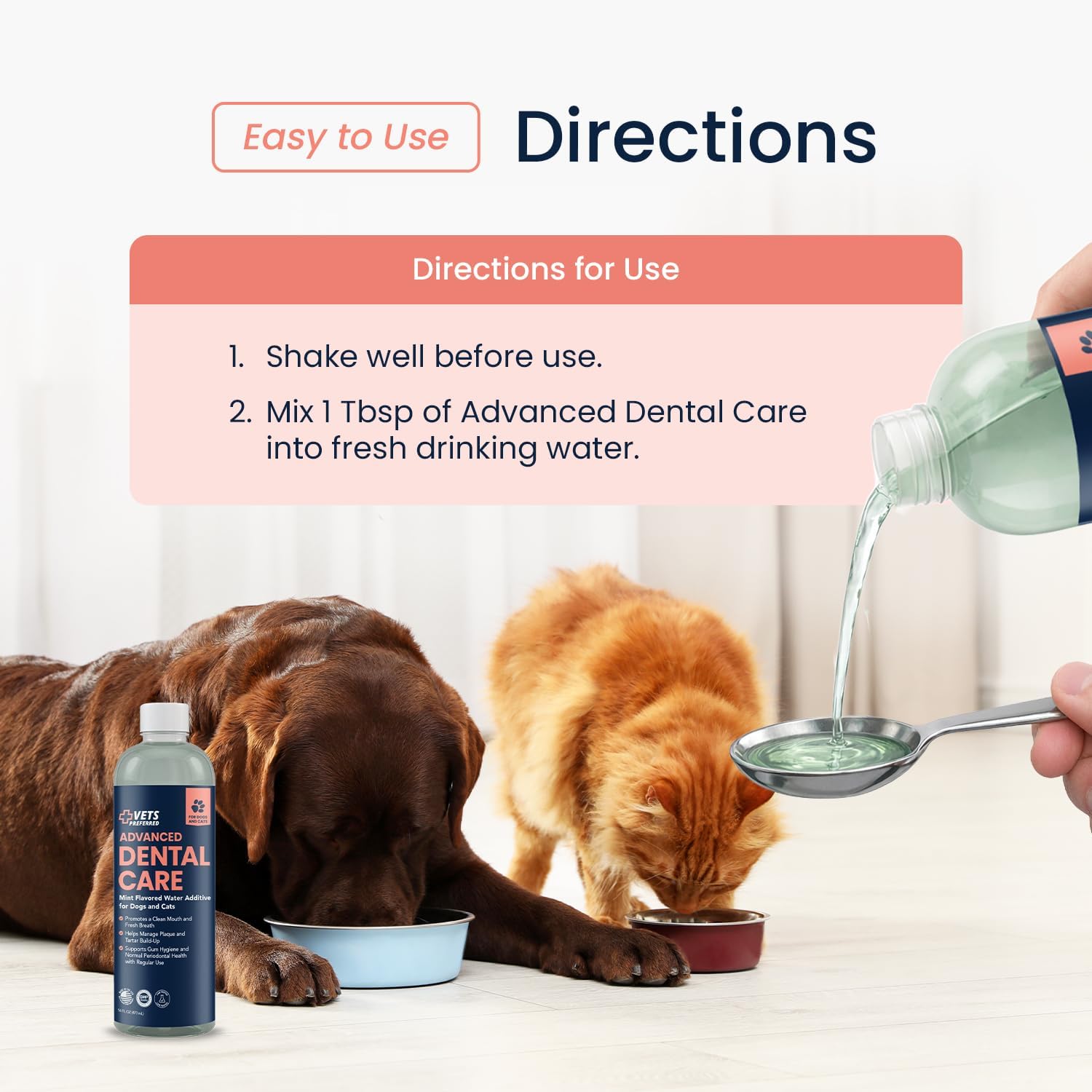 Vets Preferred Dog Breath Freshener & Water Additive for Dental Care – Fights Bad Breath, Removes Tartar & Plaque – Dog Mouthwash for Healthy Teeth & Gums, Gingivitis Support – Mint Flavor