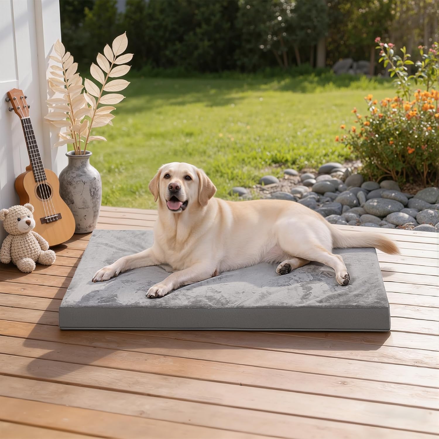 Vonabem Waterproof Outdoor Dog Bed Large Medium Sized Dogs, Washable Crate Pad 35 inch, Foam Orthopedic Pet Beds with Removable Cover,Durable Anti-Slip Kennel Pads 35″x22″, Gray