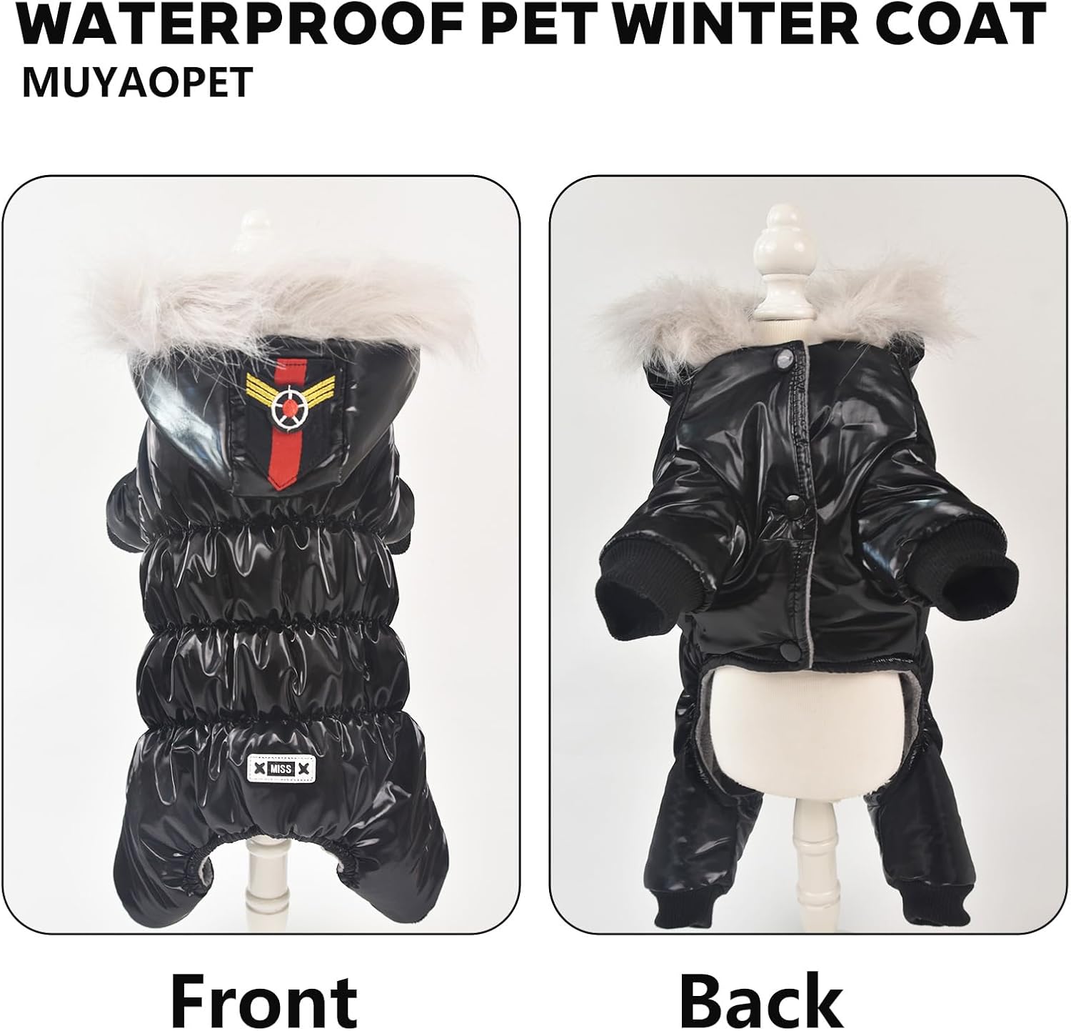 CLASSIC DESIGN – Black winter dog clothes make pet looks cool and eye-catching.This attractive dog jackets for small dogs are lightweight and waterproof, doesn’t get soggy from snow or rain.