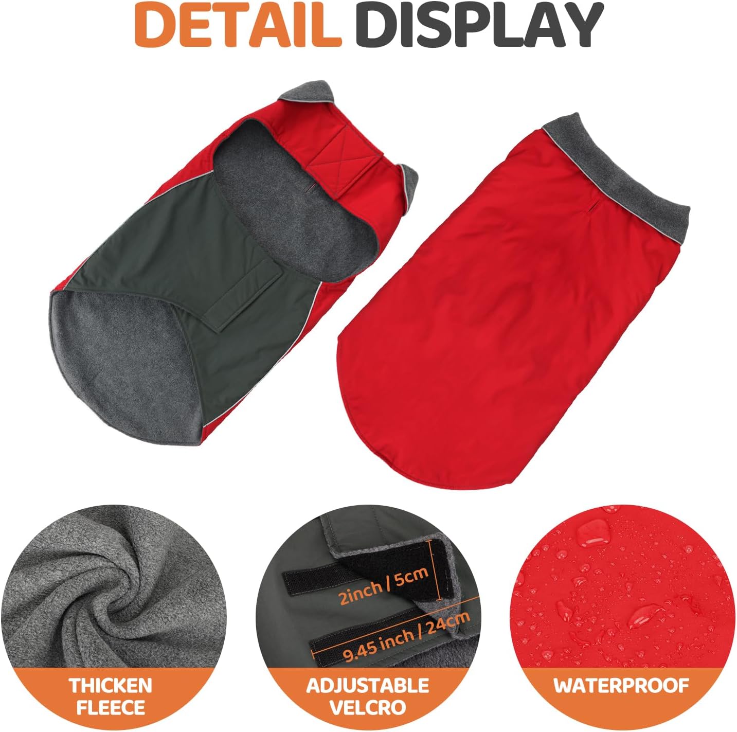 Winter Dog Coat 100% Waterproof Thicken Dog Jacket for Lab Pitbull Doberman Standard Poodle,German Sheperd Large Bread Pet(Red,2XL)