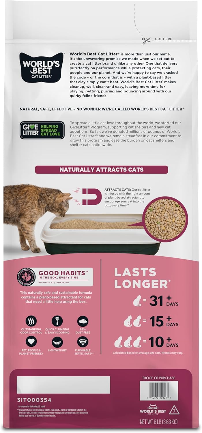 WORLD’S BEST CAT LITTER Good Habits Cat Attract Litter | Natural Plant-Based Attractant | Multicat Flushable Corn Litter | Unscented Odor Control | Low Tracking & Lightweight | Made in USA 8lb Bag