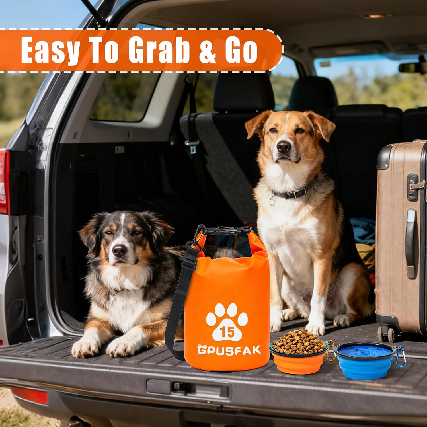 zip Roll Top Pet Food Storage Bag with Travel Bowl(96 Cup) – Dog Food Travel Bag Waterproof Kibble Container for Camping Road Trips Dog Boarding Weekend Getaways Machine Washable 15L Orange